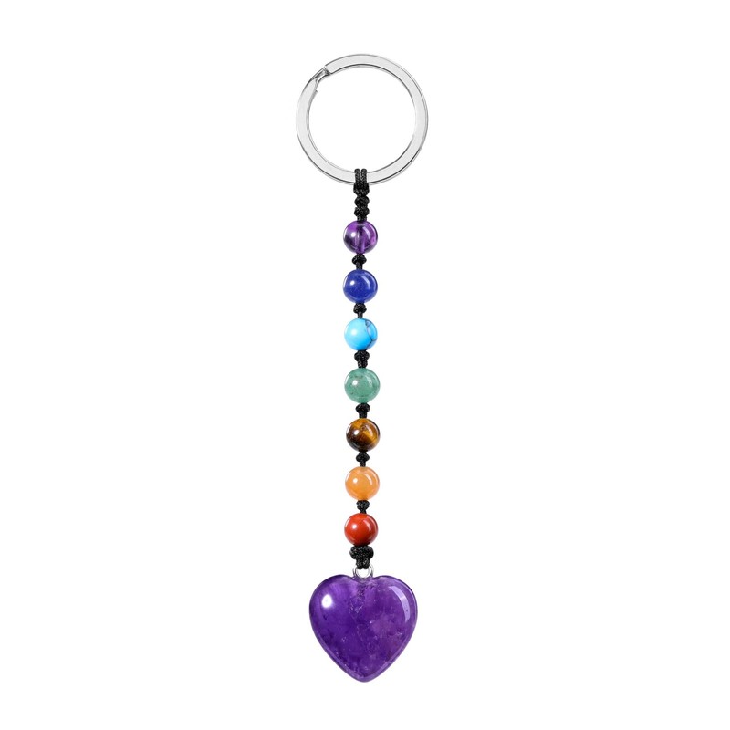 CrystalTears Heart Keyring 7 Chakra Beads Pendant Key Ring Gemstone Bag Pendant Talisman Spiritual Gifts, Quartz crystal