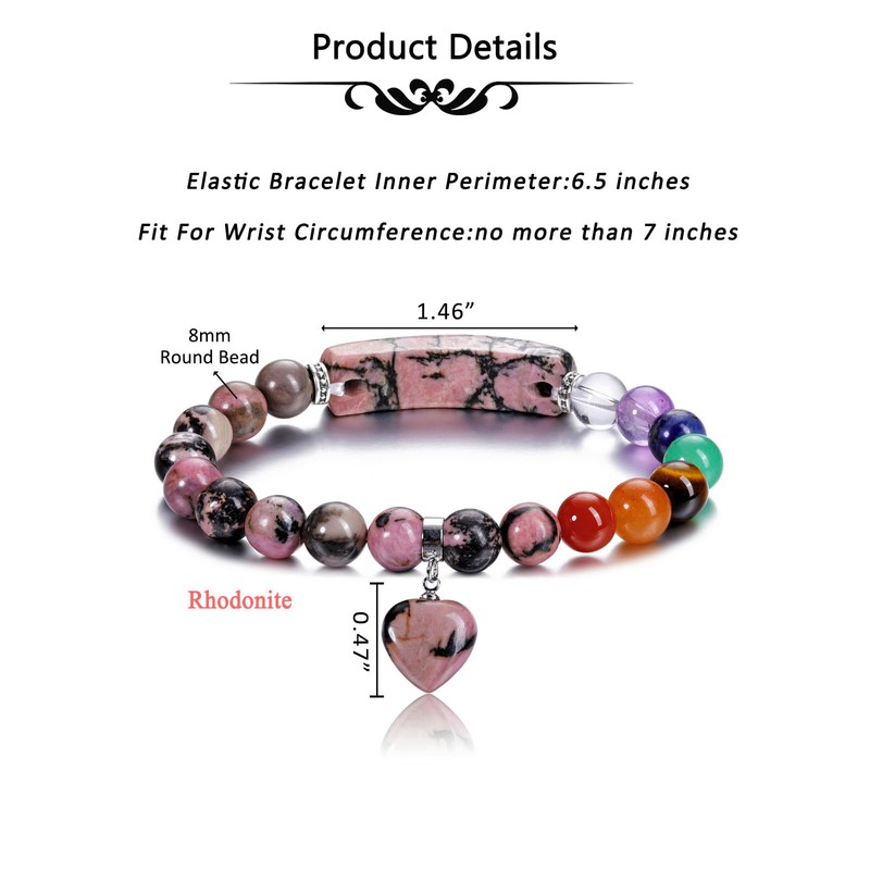 - Crystal Bracelet for Women: 8mm energy rhodonite crystal bead and chakra stone bead, combined with heart charm bracelet, elegant crystal bracelet suitable for both women on daily wear or holiday dress, It is easy to bring an elegant or gentle look to any occasion. Brings you good luck, confidence,happiness, protection and endless positive energy