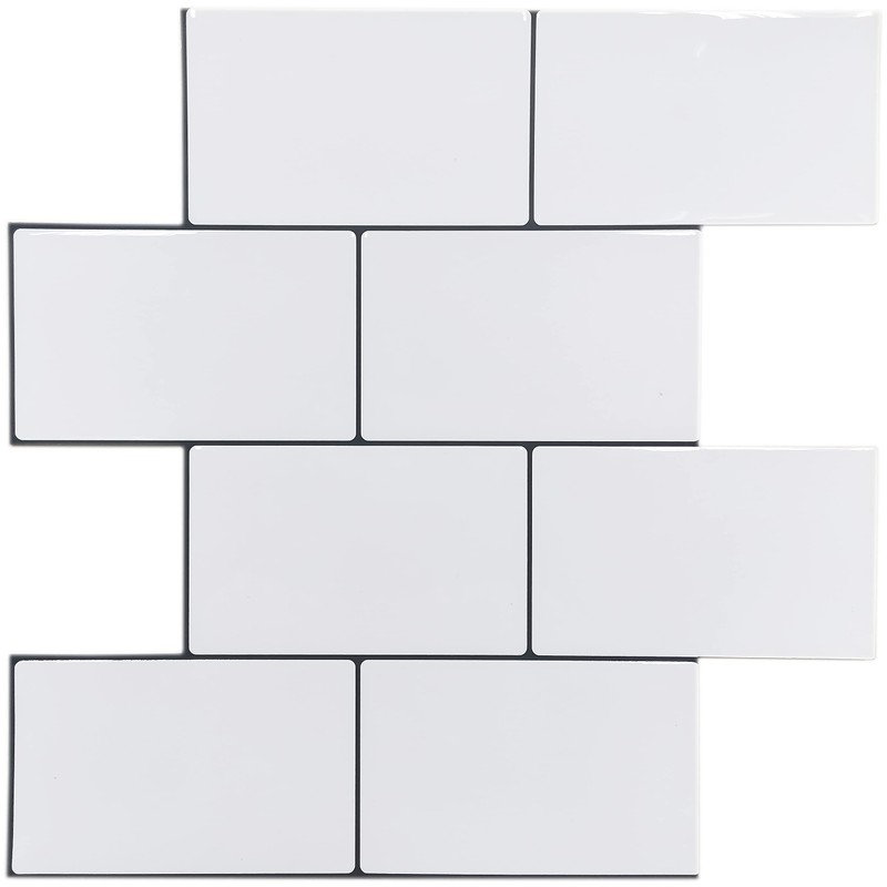 Crystiles 12"x12" Subway White Vinyl Peel and Stick Tile Backsplash, Backsplash Protector, Pro Series Thicker Version,4-Sheet Pack