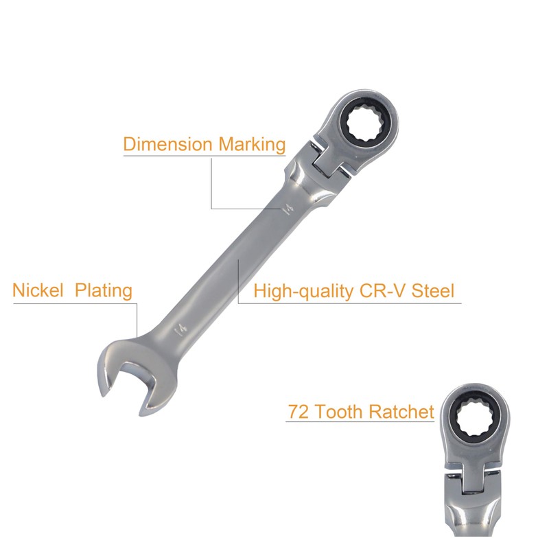 cSeao 27mm Flex-Head Ratcheting Combination Wrench 72-Teeth, Cr-V Constructed, Chrome Plating