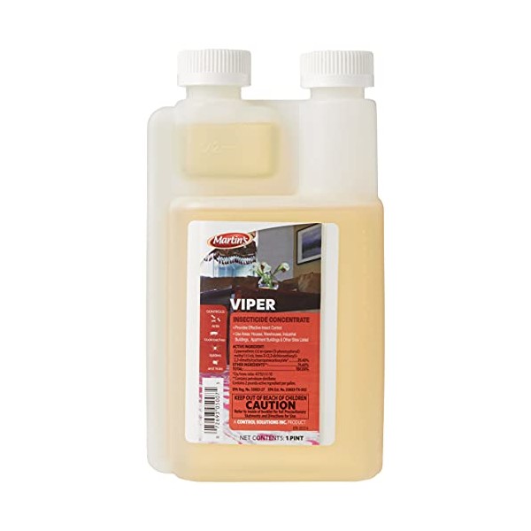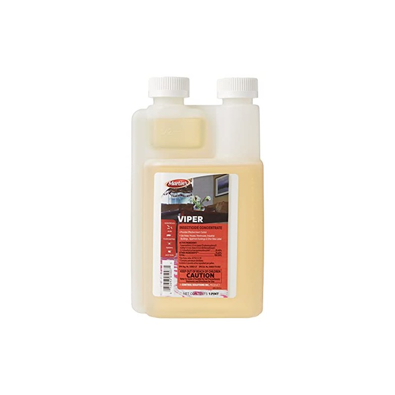 - Mix Viper Insecticide at a rate of 1.3 oz. per gallon of water and apply as a coarse spray to areas of pest infestation. Fill sprayer with the desired volume of water and add Martins Viper EC Insecticide. Close and shake before use in order to ensure proper mixing. Shake or re-agitate sprayer before use if spraying is interrupted. Make up only as required; repeat treatments when needed.