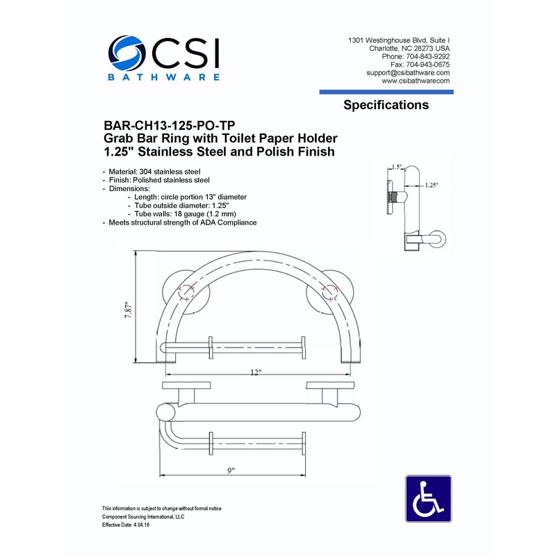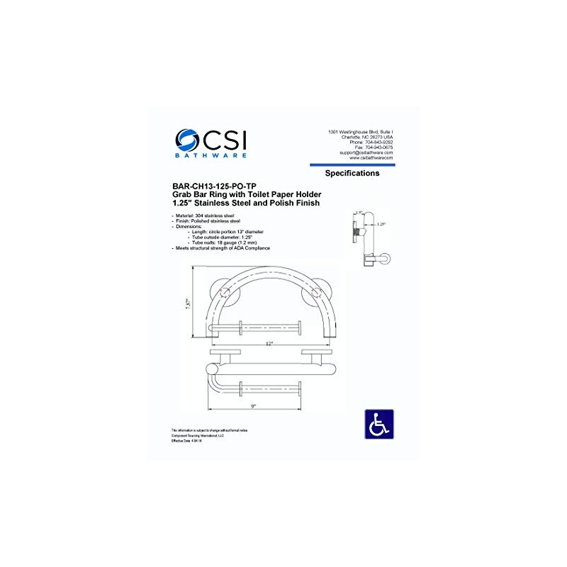 - Full circle 13" grab bar with attached toilet paper holder avoids the institutional feel so many safety bars have while enabling a secure grip