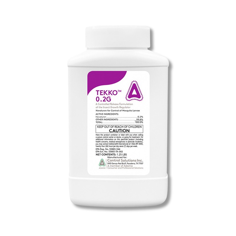 Tekko 0.2G is a granular larvicide that contains 0.2% Novaluron as its active ingredient. Novaluron disrupts the development of mosquito larvae, preventing them from reaching the adult stage where they can breed and spread diseases. The product is designed for use in small bodies of water where mosquitoes breed and is effective for up to 90 days.