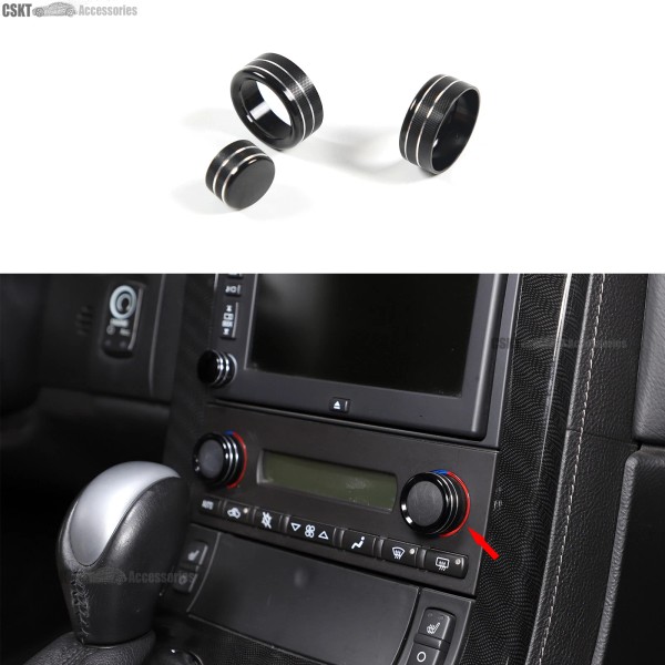 CSKT2022 3 x Black Alloy Console A/C Panel volume knob ring Trim For Corvette C6 2007-13