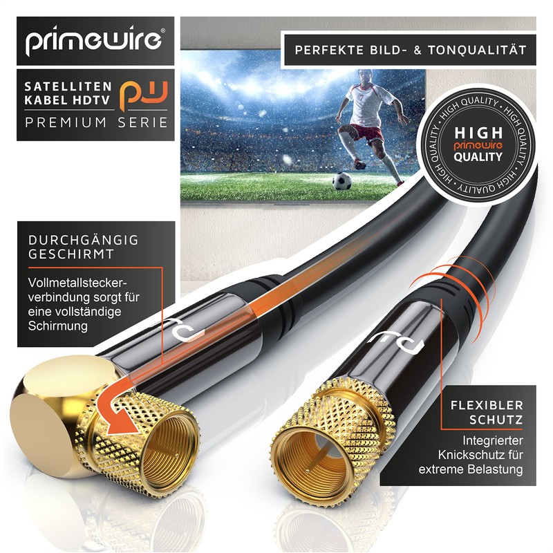 - Model name: Primewire 5.0 m (metres) premium TV satellite cable (90° angled) / F-connector (male) straight / F-angled plug 90° (male) | transmission of analogue and digital signals as well as DVB-S