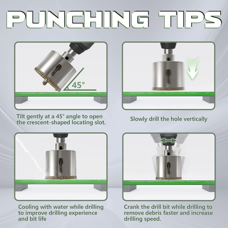 • 【Versatile Uses】The product is worked great for drilling holes through a variety of materials, including stone, ceramics, glass, etc., whether for home DIY or professional construction, to meet different cutting needs.