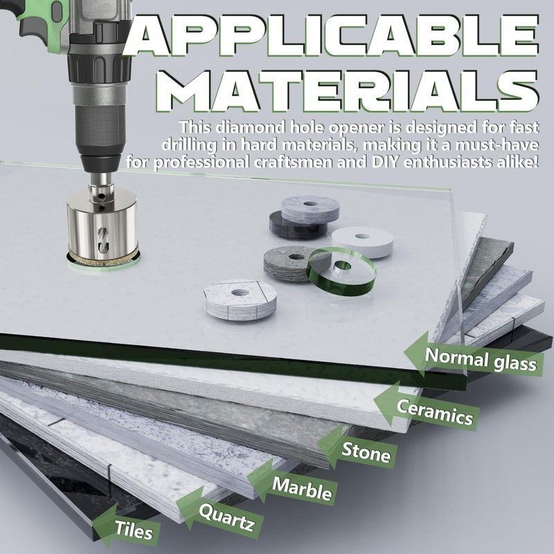 - 【Versatile Uses】The product is worked great for drilling holes through a variety of materials, including stone, ceramics, glass, etc., whether for home DIY or professional construction, to meet different cutting needs.