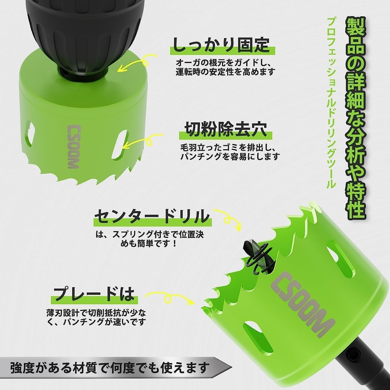 - Material: The blade is made of high quality bi-metal for enhanced sharpness, corrosion resistance, and abrasion resistance, and excellent durability. The center drill and shank are made of high quality high-speed steel for good cutting and toughness