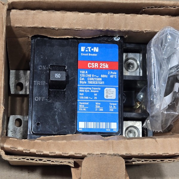 Manufactured by cutler hammer. Type csr circuit breaker; 2-pole; 150 amp; 25 kaic; 120/240