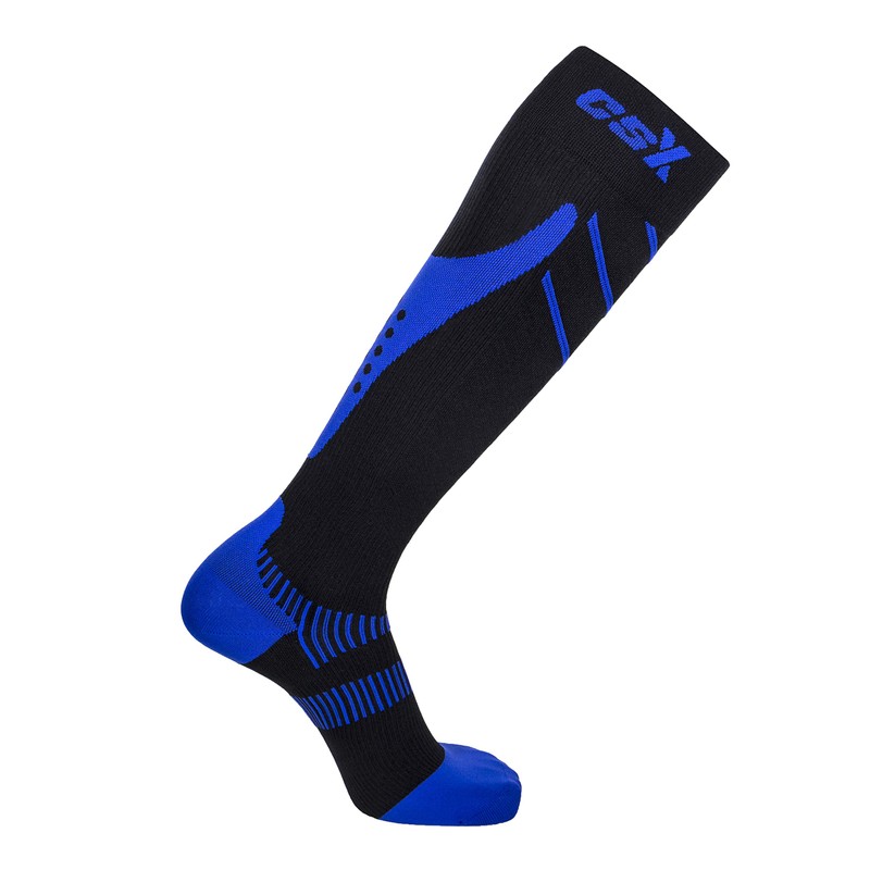 CSX 15-20 mmHg Compression Socks for Men and Women, Knee High, Recovery Support, Athletic Sport Fit, Small, Royal Blue on Black