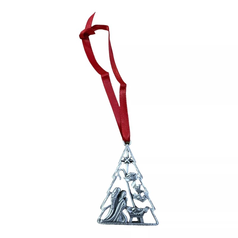 CTA Christmas Ornament Tree with Nativity Scene Crowns Pewter