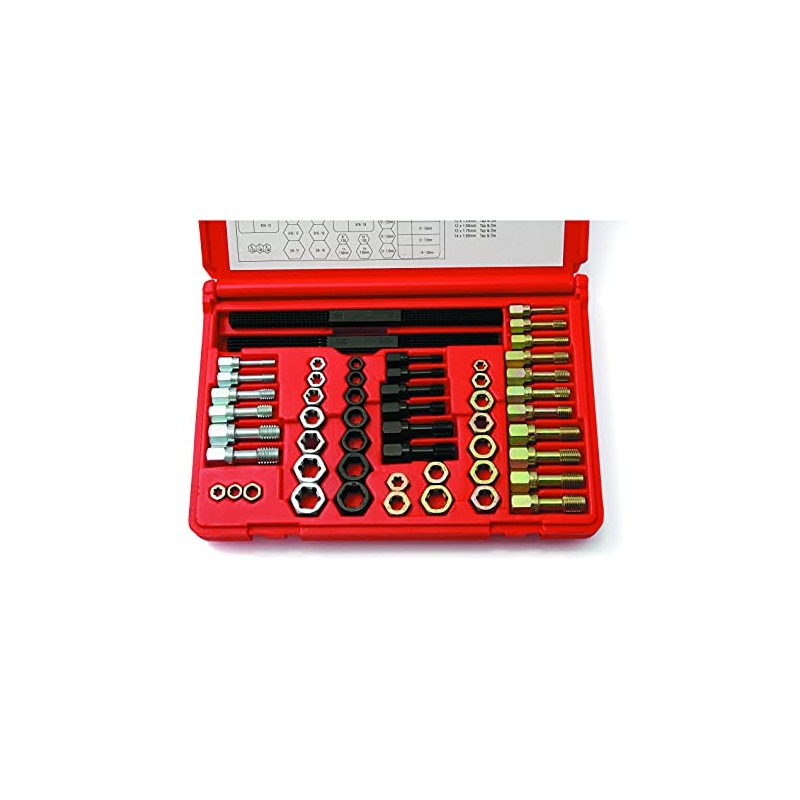 - Tap & Die Sets: Metric - 6 x 1.00, 8 x 1.50, 10 x 1.00, 10 x 1.25, 10 x 1.50, 11 x 1.50, 12 x 1.25, 12 x 1.50, 12 x 1.75, 14 x 1.50mm NC-USS - 1/4" - 20, 5/16" - 18, 3/8" - 16, 7/16" - 14, 1/2" - 13, 9/16" - 12 NF-SAE - 1/4" - 28, 5/16" - 24, 3/8" - 24, 7/16" - 20, 1/2" - 20, 9/16" - 18