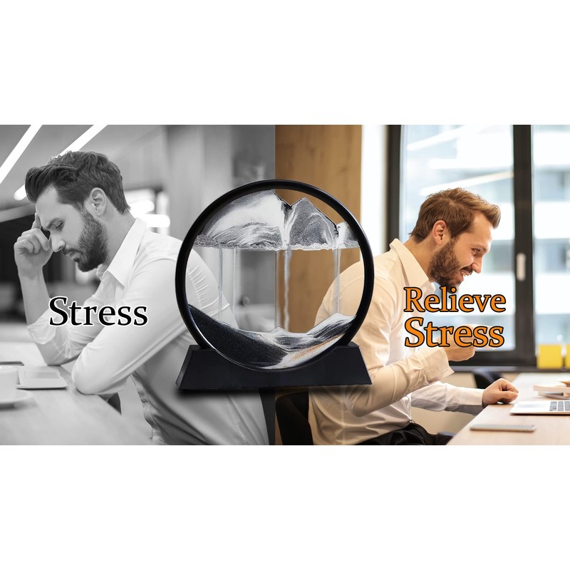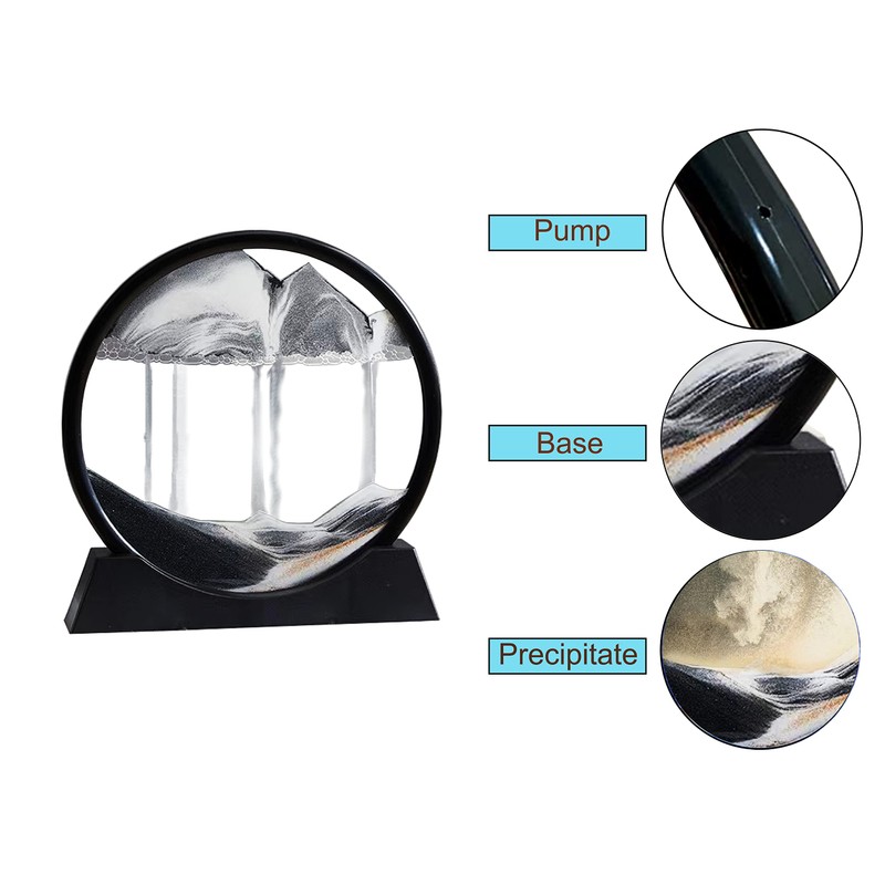 - Office Desk and Home Decor: Moving sand art is a fun desk accessory, your eyes typically see ocean, mountain, sky, and artic/glacier scenes from the design. Use your hands-on skills and creativity to make it a wonderful desk ornament for your office or home. When you're tired from work, looking at the sand that slowly forms, it helps you to relax a become fully absorbed.