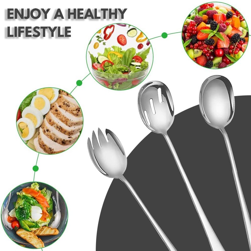 - Salad cutlery set: includes 1 x salad spoon, 1 x salad fork and 1 x salad strainer, the elegant design makes this cutlery suitable for formal events or everyday meals, and a great gift for family and friends.