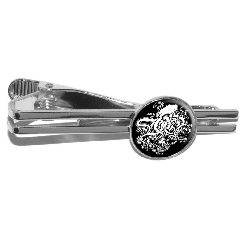 Cthulhu Round Tie Bar Clip Clasp Tack - Silver