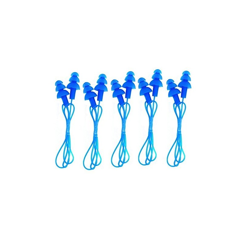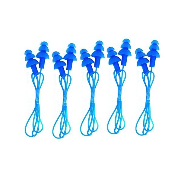 CTKcom 5 Pcs Silicone Gel Soft Earplug Corded String Ear Plugs for Swimming,Pack of 5,Blue