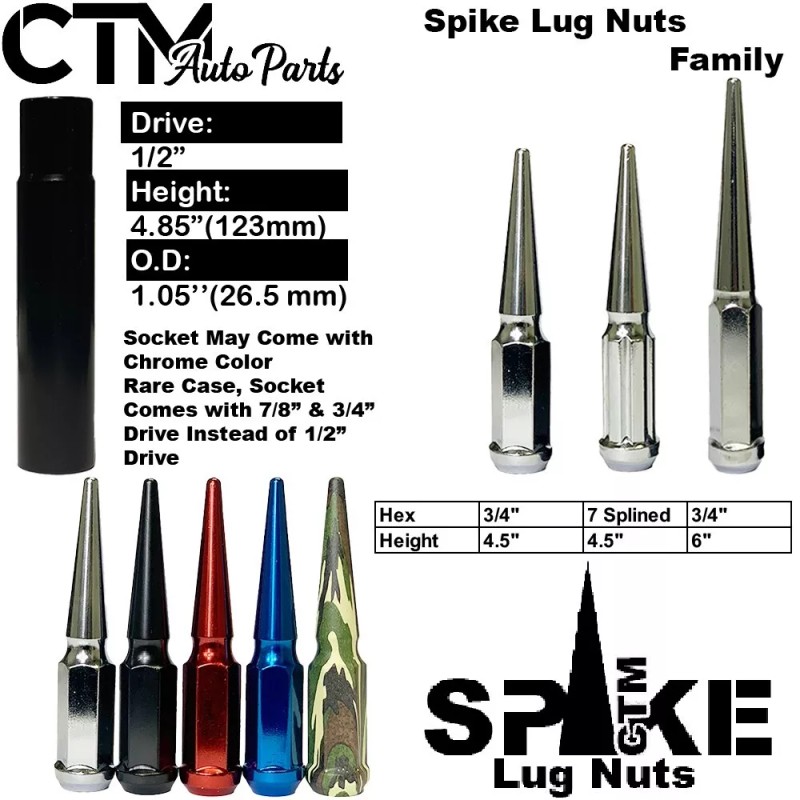 Socket Type: 4.5" Tall 3/4" Hex Spike Lug Nuts Socket