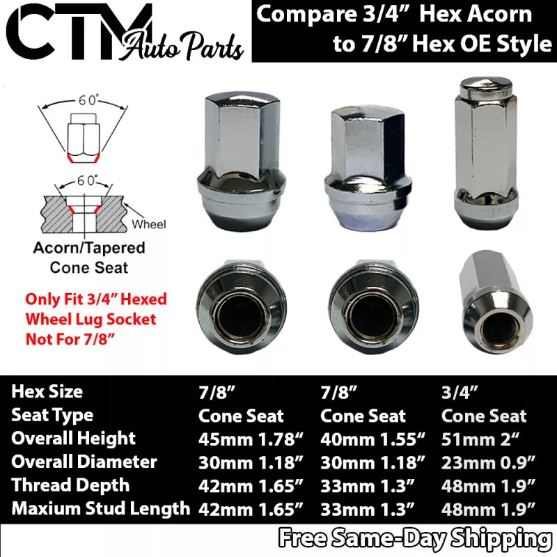 CTM 32x 1.8" Tall Chrome M14x1.5 Acorn Lug Nuts 3/4 Hex Fit Chevy Silverado Suburban