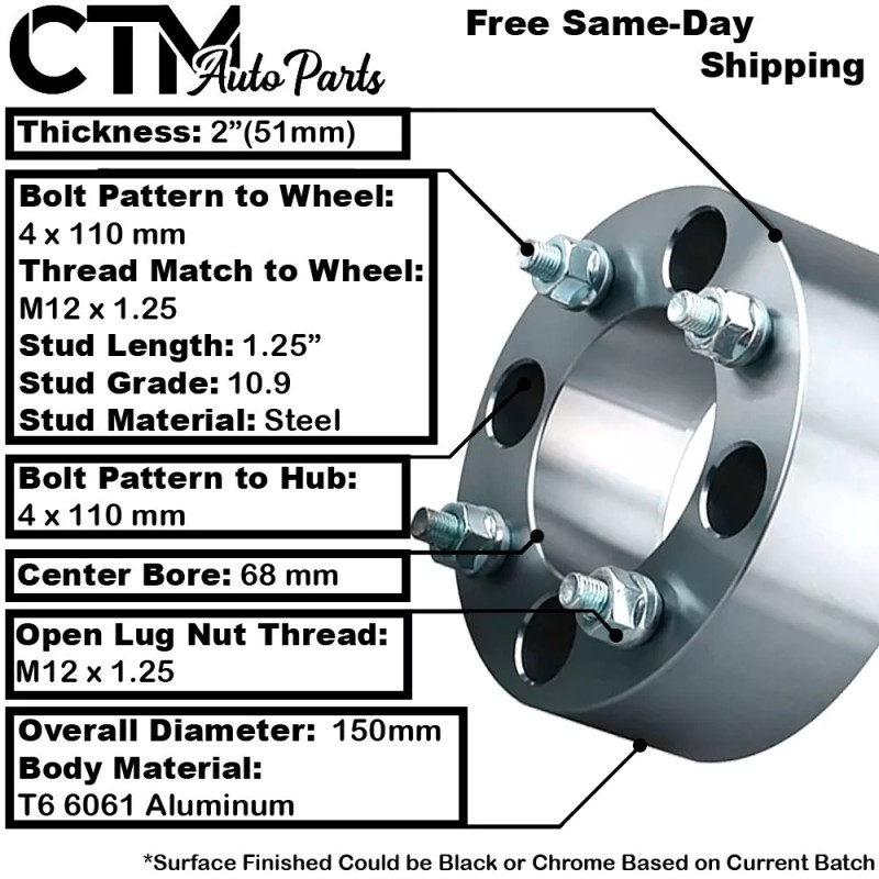 Required Vehicle Hub Bolt Pattern: 4x110mm