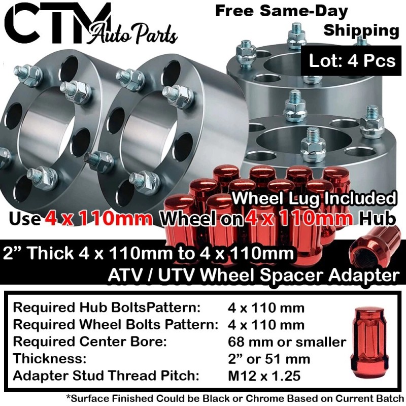 CTM 4x 2" Thick 4x110 ATV UTV Wheel Spacer Adapter Red Lug Honda Polaris Yamaha More