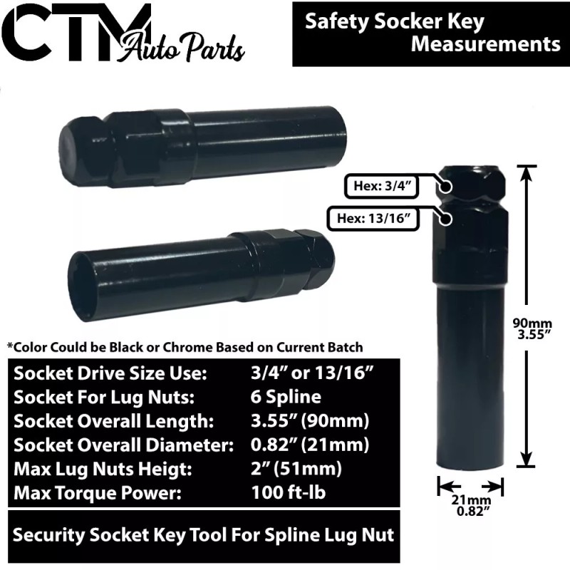 Socket Type: 6 Point Spline Tuner Lug Nuts Socket