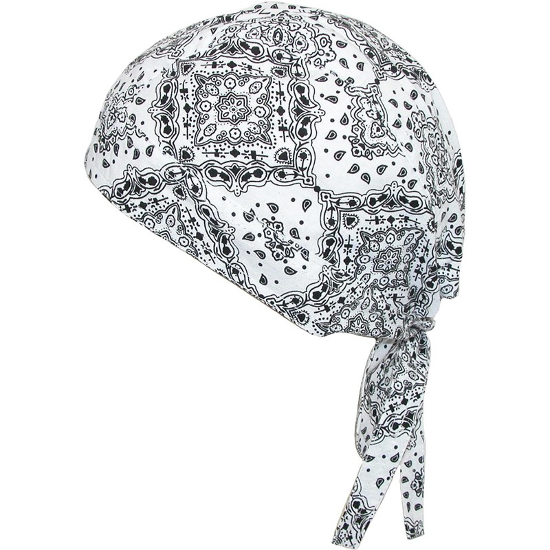 CTM® Men's Cotton Unlined Paisley Biker Do Rag Cap, White