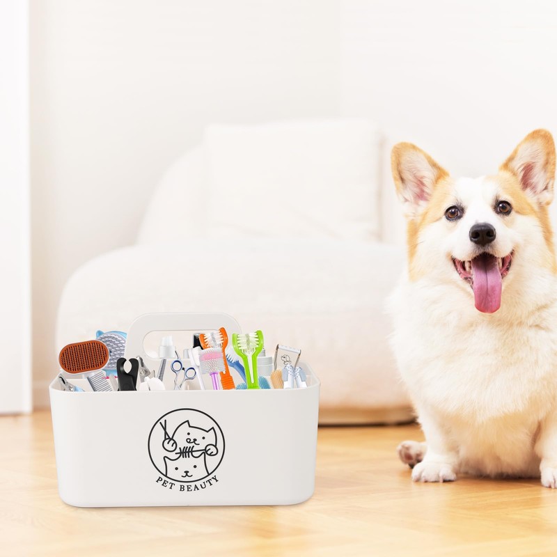 - Dog Grooming Kit Organiser:Pet supply organiser measures 24.5cm x 14.5cm x 11cm,provides convenient and stylish storage for your pets grooming stuff,organizing pet daily care tools and supplies in one place.