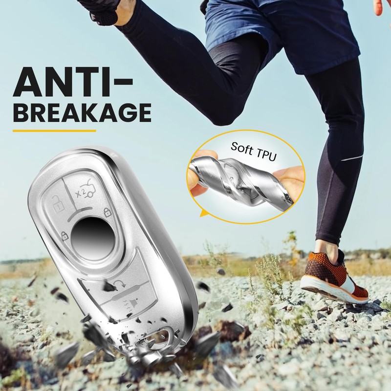 CTRINEWS for Buick Key Fob Cover with Upgraded Anti-lost Luxury Keychains, Fashionable Matte Metallic Silver Soft Case for Enclave Encore GX Tourx (6 buttons)(Silver, A)