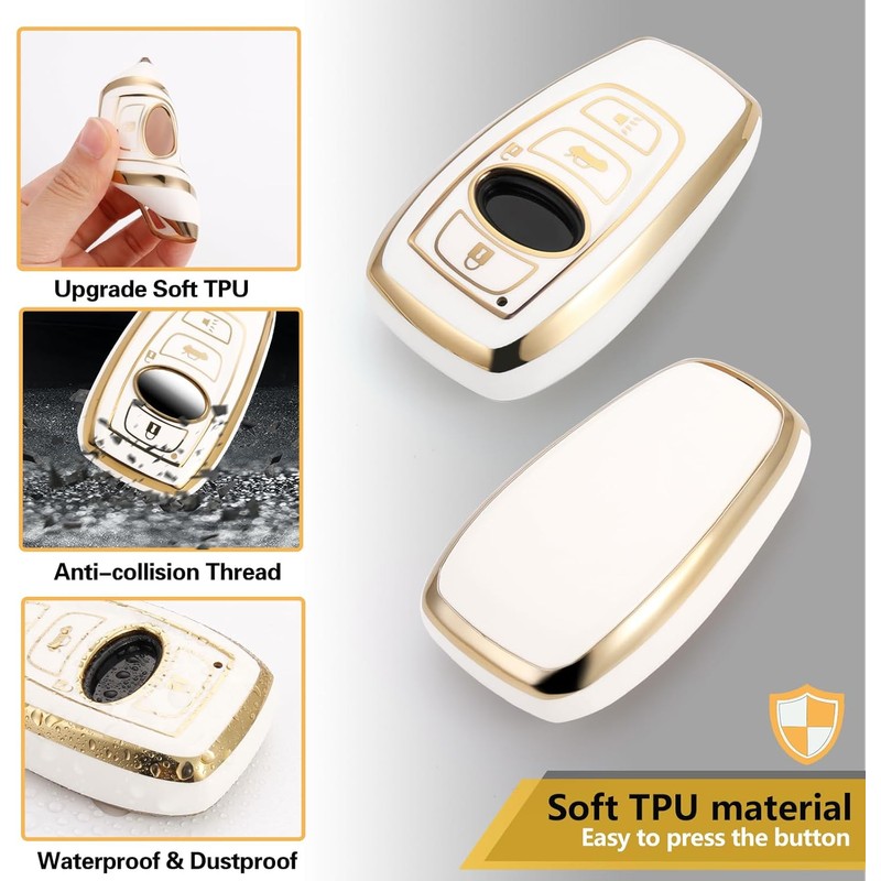 CTRINEWS for Subaru Key Fob Cover with Metal Braided Keychain, Upgraded Soft Case for Forester XV CrossTrek Ascent Outback Legacy Impreza STI WRX BRZ Fob Shell (Gold Bling,A)