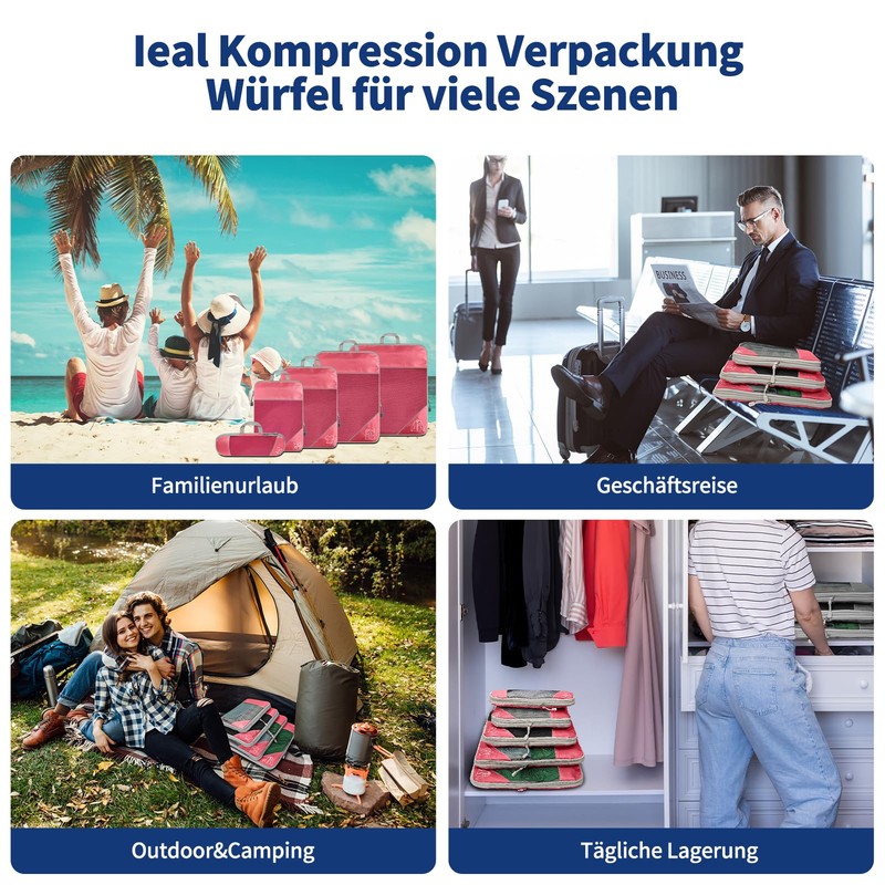 - More easy travel and comfortable life: If you want to pack your luggage more efficiently to store all your important things without becoming too bulky, the compression pack cubes are the ideal choice. Ideal for travel, vacation, business trip, camping and outdoor activities. It can also meet the daily storage of the family. The compression pack cubes work very well for a backpack organizer, suitcase organizer or luggage organizer.