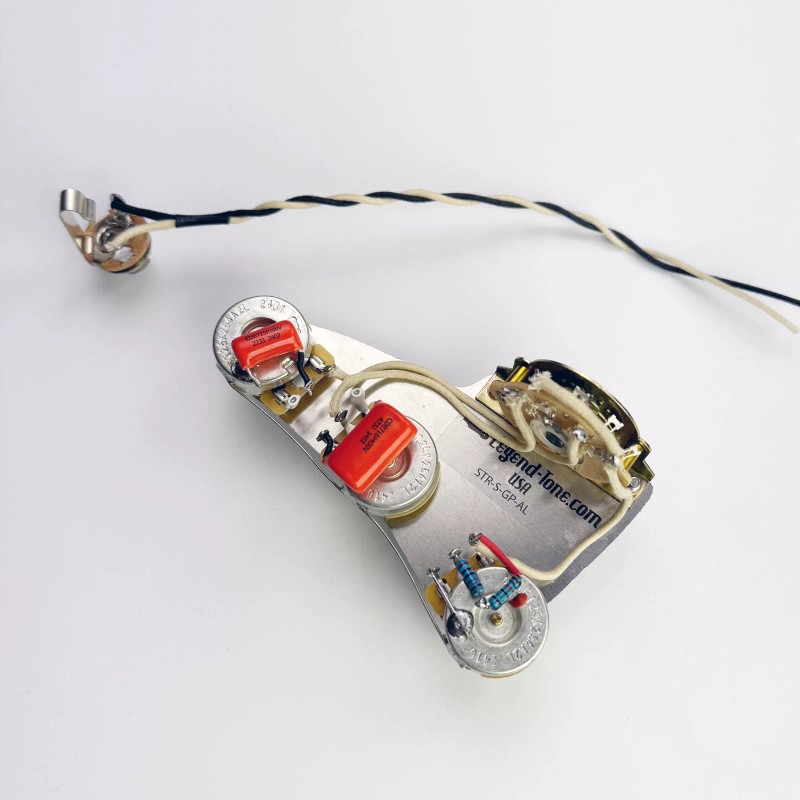 CTS, Oak Grigsby, Fender, Orange Drop, Legend Tone Custom Fender Stratocaster Wiring Harness - Nashville Split Tone Orange Drops - Brass