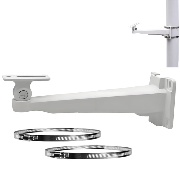 - Camera Mount Bracket with right-angle base must be installed on corner wall & utility pole. Color: White. Application: Works as an adapter to allowusers to mount anything to a vertical pole;Used for Pole Mounting StainlessSteel Clasp