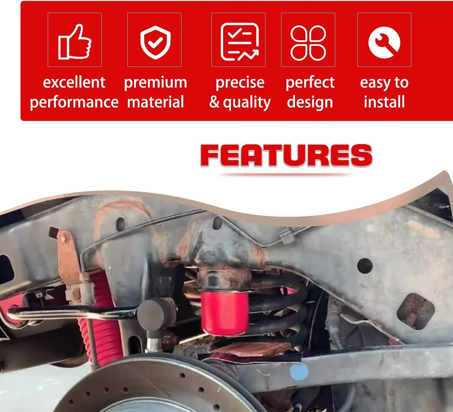 * Features: These bump stops are the original long and fit into the stock cups, working to limit the travel of the axle. Trust these to outlast the foam rubber provided by the factory and give a better a ride.