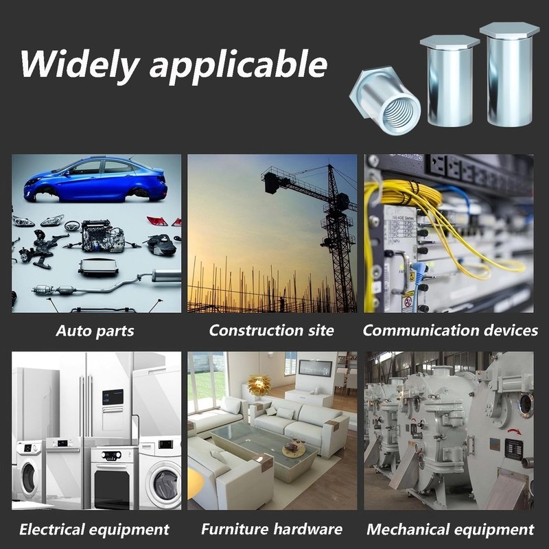 - Wide Application: This hexagonal rivet stud is widely used for fastening sheet metal, chassis, cabinets, and other structures, making it particularly suitable for applications requiring quick installation and secure fixation.