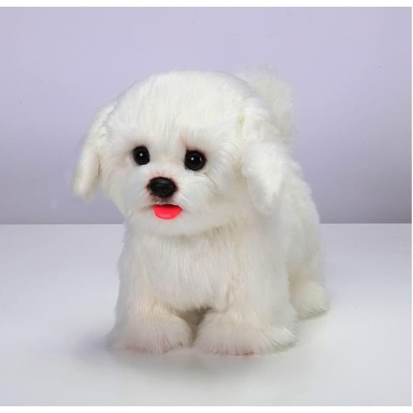 CU-MATE Plush Interactive Maltese Simulation Dog-Realistic Puppy Electronic Toy Dog with Walking/Barking/Wagging Tail/Talking-Like Real Robotic Present