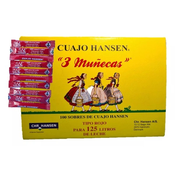 Composición: cloruro sódiuco, quimosina, peptona de caseína Actividad: 5000 IMCU / sobre