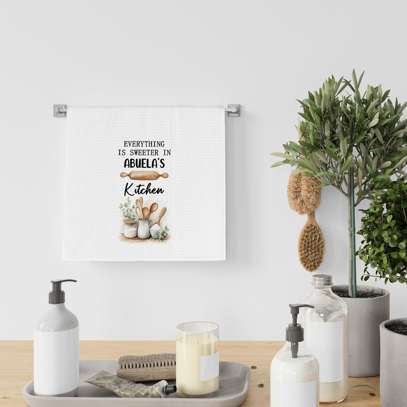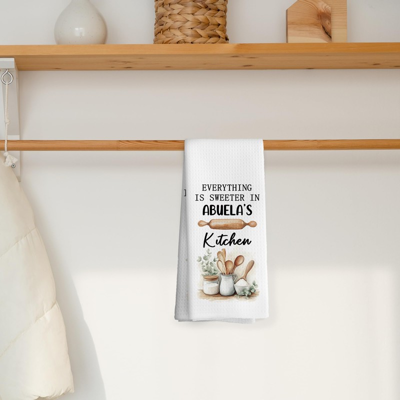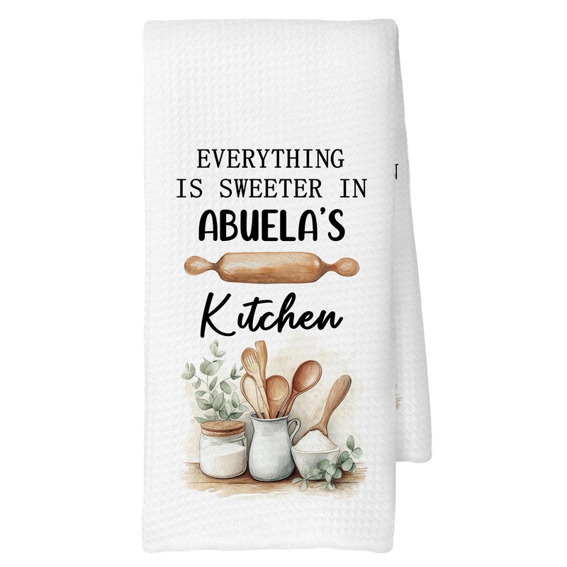 CUANFDDSF Abuela Gifts Kitchen Towels, Grandma Grandmother Gifts from Grandson Granddaughter Grandkids,Everything is Sweeter in Abuela's Kitchen Decoration Tea Towel Hand Towels 16x24 Inch