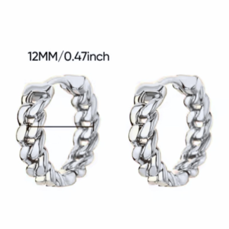 Cuban Chain Link Hoop Earrings, Chunky Waterproof Design, Stainless Steel, Unisex (Silver)