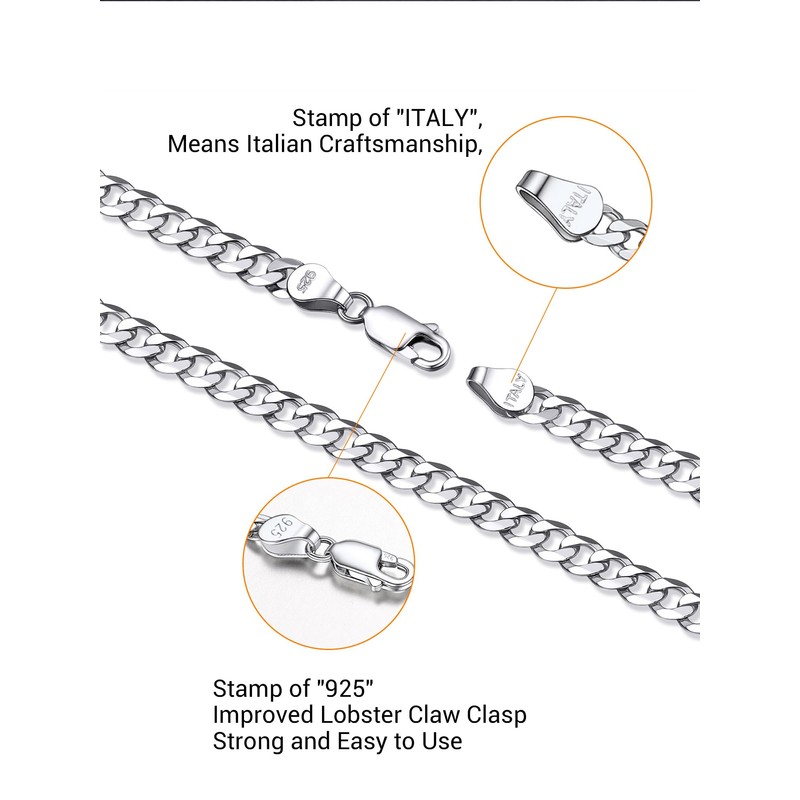 - Material: Authentic 925 sterling silver. The chain's metal content is at least 92.5% pure silver. It does not contain any nickel and will not cause any allergic reactions.