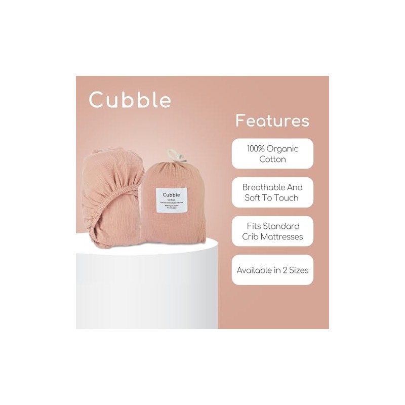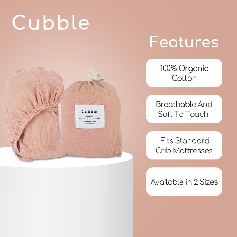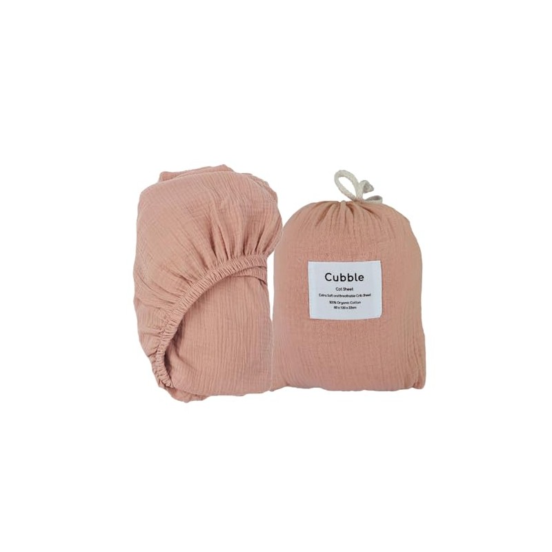 Cubble 100% Organic Cotton Fitted Cot Sheet with Storage Bag (Blush, 60 x 120 cm) | Fits Standard Cots | Perfect