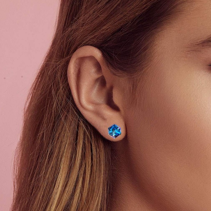 Cube Austrian Crystal Drop Stud Earrings for Women Fashion S925 Sterling Silver Hypoallergenic Jewelry (Dark Blue)