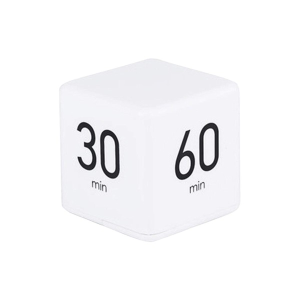 Cube Timer - 5, 15, 30 & 60 Min for Time Management (White) Kitchen & Workout Timer with Adjusted Volume