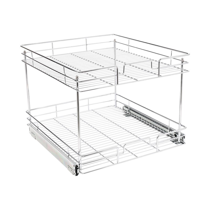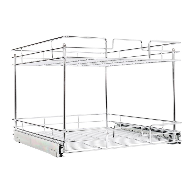 CUBELLIN 2-Tier Pull-Out Cabinet Organizer Chrome-Plated Iron Slide-Out Storage Rack 44lbs Capacity Slide Out Pantry Shelves for Kitchen Utensils Organization (19.5" W)