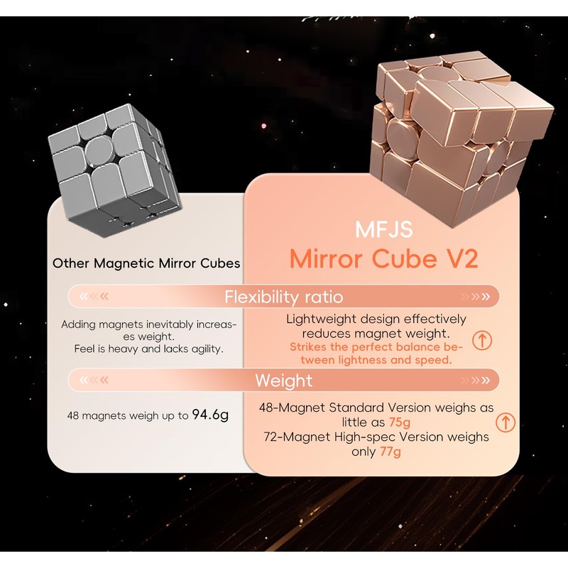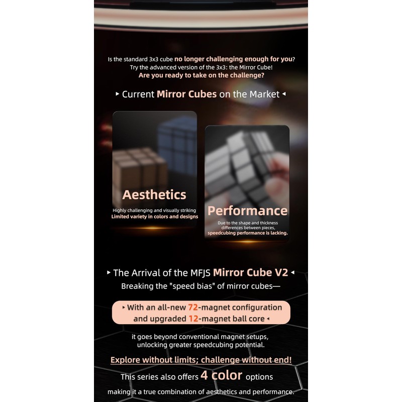 • 🏆 Redefining Mirror Speedcubing – Break the Speed Bias – Unlike traditional mirror cubes, the Mirror Cube V2 is designed to support advanced speedcubing techniques, making fast solving a reality. 🎟️