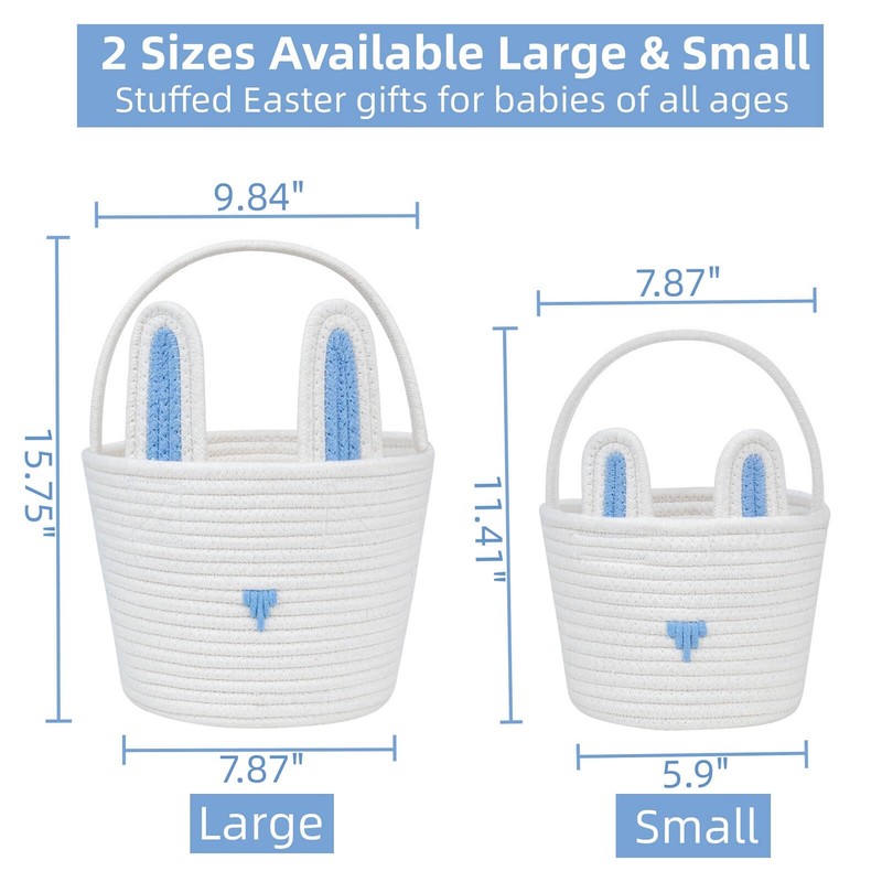 - Cute small Easter basket has good stability, hand-woven, 100% cotton rope material, soft, natural & eco-friendly, skin-friendly to babies, no strong smell, durable, empty Easter basket stuffers.