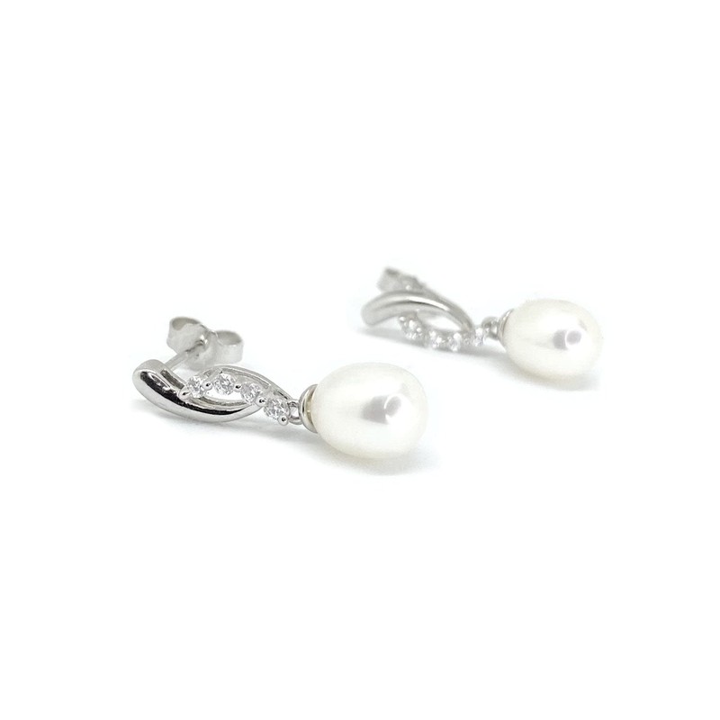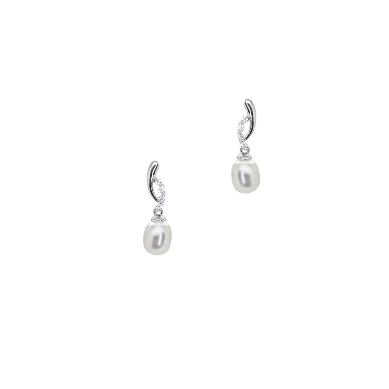 - ✔ These beautiful white drop freshwater cultured pearls (5-6mm) dangle delightfully from the pretty setting of 4 sparkling CZ crystals in a swirl motif.
