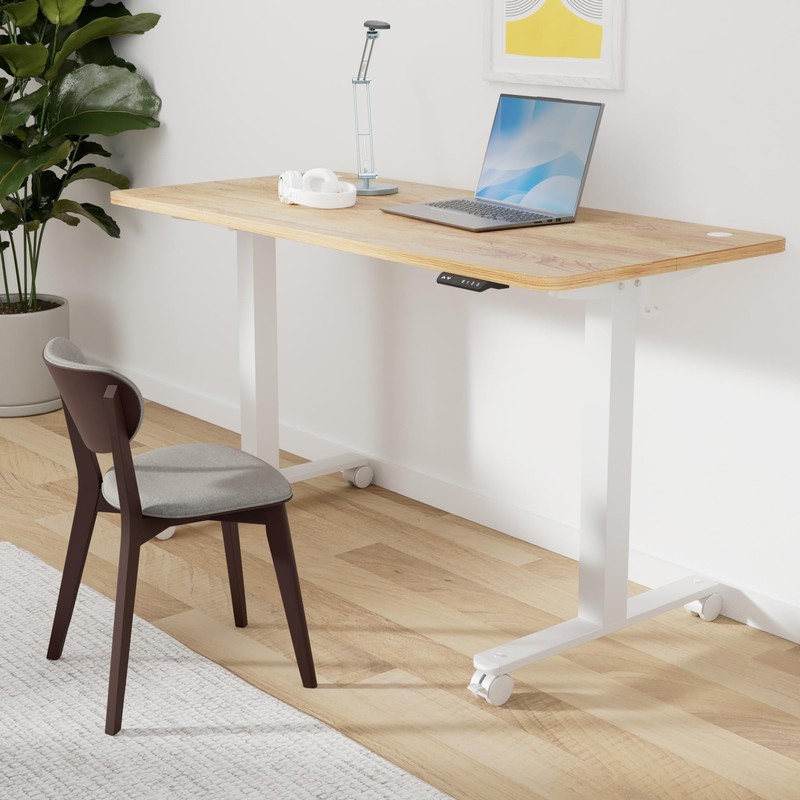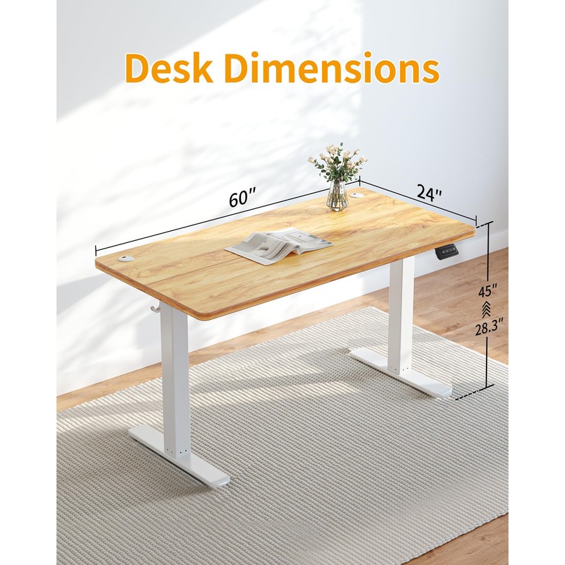 CubiCubi Electric Standing Desk, 60 x 24 Inches Height Adjustable Sit Stand Desk, Ergonomic Home Office Computer Workstation, Light Rustic Brown