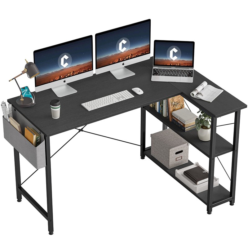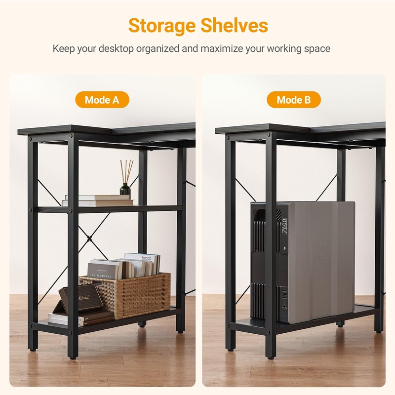 - 【Enrich Work Environment】: Our L-shaped computer desk with storage shelves offers ample storage space, allowing you to organize all your office supplies effortlessly. The storage bag releases you from messy desktops and keep everything tidy and within reach.