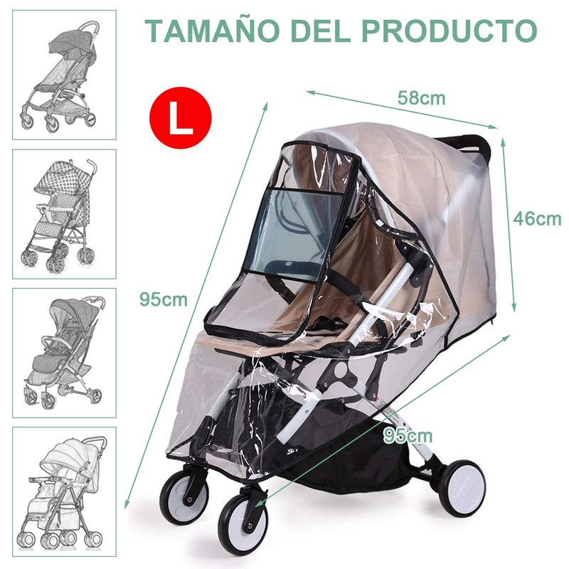 Cubierta de Lluvia para Cochecito, Protección de Lluvia y Viento Transparente Cochecito, Protección Contra el Polvo, Accesorio para Carriola de Protección para los Ojos para Uso en Exteriores(L)