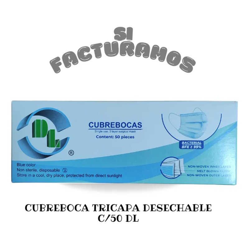 Cubrebocas DL Mascarillas quirúrgicas están elaborados con tres capas de tela no tejida, con un filtro intermedio de polipropileno, que en combinación crean una eficiente barrera bacteriológica. Su capa externa de tela hidrofóbica es repelente a líquidos, la capa intermedia está formada de un tejido fundido con una filtración bacteriana de 95%.